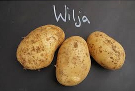Our first variety is Wilja, a very versatile potato, long and oval in shape with a rough yellow skin and light yellow flesh. Wilja is a waxy potato, suitable for boiling, roasting, chipping, baking and mashing and at £6 for a 25kg bag you can’t go far wrong.